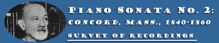 As Ives implies, the sonata defies any single interpretation. Many pianists have something unique and interesting to say about this elusive, protean work. And, as a fellow Ives fan on our discussion board recently pointed out, the "Concord" has been recorded an enormous number of times. Well over thirty pianists have released commercial recordings since Kirkpatrick's premiere was issued back in 1948. (Is it the most frequently recorded modern piano work?) In 2004 alone, three new versions were released. For a direct comparison of timings of recordings of the "Concord" Sonata recordings reviewed on this site, click here.