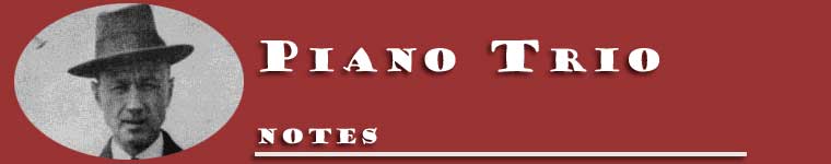 For more commentary and a complete streaming video performance of the Piano Trio by the ensemble Triple Helix, go to the following link: http://streams.wgbh.org/forum/forum.php?lecture_id=1193 . (The program also includes a not-so-terribly exciting lecture on Emerson & transcendentalism, and selected movements from the violin sonatas.) Composition History Ives probably composed the Piano Trio in 1896 and from circa 1904 to 1907. He also probably made revisions to the work in 1911and circa 1914. Most of the "borrowed" material appears in the second movement. Some of the tunes quoted in it are: