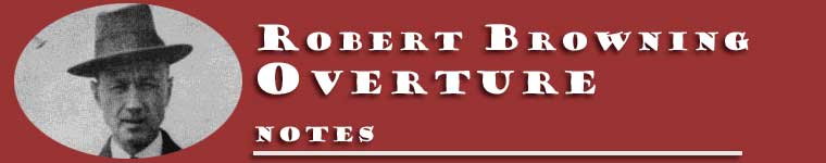 Ives originally conceived the Robert Browning Overture as a single work in a cycle of overtures called "Men of Literature." Other authors that Ives intended to represent were Matthew Arnold, Ralph Waldo Emerson, Walt Whitman, Henry Ward Beecher, and John Greenleaf Whittier. However, Ives completed only the Robert Browning Overture. Ives did use the sketches for various overtures as germinal ideas in other works. Most notably, the Emerson Overture evolved into the first movement of the Second Piano Sonata (also dedicated to Emerson). Ives made following remarks appear in various places on the score. They describe his feelings about the inspiration for the overture, Robert Browning. Naturally, they also serve to illuminate the music as well: