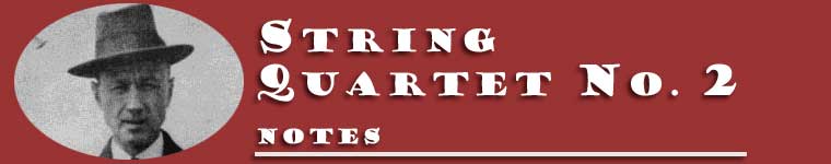 It's clear that on one level this work represents Ives lashing out at the conservative musical establishment that rejected him and wanted nothing to do with his music. So, on one level, this is some of the most confrontational music that Ives would ever write. But, on another level, this is another example of Ives' romantic transcendentalism. The work's conflict resolves itself with the a shaking of hands and a "walk up the mountain side to view the firmament!" In my view, the closing passage of this work is as grand as anything Ives ever composed. It really is magnificent. Composition History Ives composed / assembled the String Quartet No. 2 from 1911-13. (Portions of the second movement appear to have been composed as early as 1907.) Borrowed tunes include: