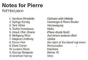 Notes for Pierre Rolf Hind (piano) Queen Elisabeth Hall & Instant CD, 26 March 2000