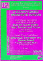 This elaborate event was a sequel to the Rimsky-Korsakov conference and concerts organised by Goldsmiths Centre for Russian Music with South Bank Centre last year. A two-day conference brought together worldwide academic expertise for a packed programme of lectures, seminars and concert presentations. There was also a round table discussion at the Purcell Room about Russian Music in the Millennium, but the experts were visibly reluctant to take up the generalisations about the state of musical composition in Russia itself now, or about the effects of the recent Russian 'Diaspora' posed by the chairman, Norman Lebrecht.Sampling but two of the wide ranging sessions at Goldsmiths, I heard Chris Dempsey unravelling surviving fragments of a famous Futurist opera, Victory over the Sun; Daniel Jaffe, author of Phaidon's book on Prokofiev, discussing the composer's experimentation during 1915-29, and Noelle Mann, Curator of the Prokofiev and Schnittke archives, who gave a fascinating talk about the young Prokofiev's constant striving for originality, and his battles with the incomprehension of his aims in the Love of Three Oranges, drawing upon letters in the Archive. Those were the sorts of talk with which the BBC Third Programme used to enlighten and entertain us, before we were 'dumbed down' with a diet of 'interviews', which satisfy today's short attention spans for serious discussion. Elena Firsova presented her Mandelstam Cantata Before the Thunderstorm, recorded at a recent celebration concert of her music at RAM, available now on the Meladina Record label (Enquiries to dmitrismirnov@lineone.net).
