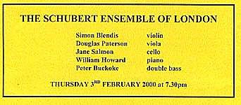 Schubert Ensemble Blackheath Concert Halls 23 January and Wigmore Hall 3 February 2000, with Chamber Music 2000 Concert by school children preceding the evening recital.