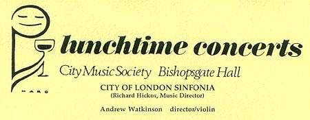 For its next fourteen concerts at Bishopsgate, a series has been planned to include an exploration of British music composed since the City Music Society was formed in 1943, some of the works selected (e.g. Rawsthorne's oboe quartet) having been commissioned by the Society. There will also be concerts at Goldsmiths' Hall. Details from the CMS website www.citymusicsociety.org