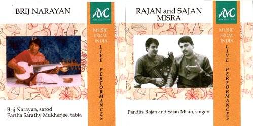 The same criticism applies to the four parts of the rendering of Rag Shyam Kalyam by the brothers Pandits Rajan and Sajan Misra from Varanasi at a concert in Slough taped in 1992. Short measure at 41.30, but do not be put off - it is a happy journey from a serious contemplative beginning in the depths of the lower registers as the rag is built note by note, culminating with an eventual outburst of uninhibited gaiety several octaves higher, with a satisfying background of tanpura, harmonium and sweeps across a lyre-like instrument, the surmandal.