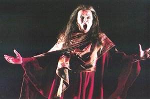 ludicrous, stock gestures choking any life out the opera. There were not many musical sparks emanating from the singers. Clive Bayley's narration of the pre-history got it off to a good start, but the big four (Trovatore famously needs the four finest singers in the world!) Sandra Ford (Leonora), Sally Burgess (Azucena)[ Sally Burgess (photo Bill Rafferty)], David Kempster (Count of Luna) and Julian Gavin as Manrico were really no more than adequate. The orchestra under Paul Daniel was fiery and forceful but unsubtle, as was the chorus, which was made to stand around like so many dead ducks in its different guises and sung accordingly.