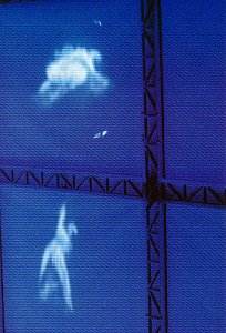 course a l'Abime," for example, where Faust and Mephistophélés are described in the text as galloping on black horses, Lapage uses eight repeated images of running horses by the early photographer Muybridge. As these horses gallop, in cadence with the music, shadow figures of Faust and the devil, suspended on wires, mime the riding in each frame.