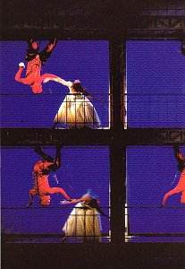 Not an opera in the traditional sense, Berlioz finally chose to call it a 'dramatic legend,' it makes great demands on the orchestra and conductor, who are at the centre of the action. These challenges were met magnificently by an orchestra that reached new heights of eloquence. Already enjoying new respect under the leadership of Music Director James Conlon, it played like a virtuoso instrument for Ozawa. It was a performance of blazing brilliance, with tight tempos and stirring energy. Sitting up high, I was able to see the wild ovation given Ozawa at the end by the members of the orchestra. It was a musical love affair and the sold-out audiences could only benefit.It also creates demands on the production team because of the long stretches of music interrupting the drama. In the 1960's, at the Palais Garnier, the Opéra had Maurice Bejart stage this work, with ballet as an integral part of action. Here they employed the very creative Canadian stage designer Robert Lapage. With designer Carl Fillion, he used the full forces of the team at the Bastille to create stunning visual images that were carefully calibrated to fit with the action and music. Treating the proscenium like a 16/9 format television screen, he divided it into grids to provide repeated images of often stunning impact. Employing dancers, climbing acrobats, extras and filmed images to fill the squares, the scenes fit well with the music and were, except for some merely decorative moments, a significant artistic achievement, as well as fine theatre. The size and complexity of this production, with its incumbent costs, might discourage companies less blessed with resources, both financial and technical.