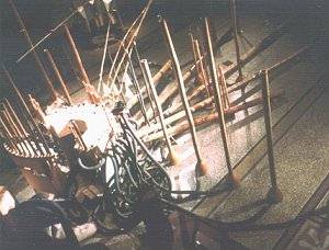 Another music installation enlivened the reception/café space in the Conservatory during the week. Cantan un Huevo by Peter Bosch and Simone Simons is a jolly collection of green bottles on bed springs which bounced and clattered away merrily for a few minutes whenever the computerised control was switched on by passers-by.