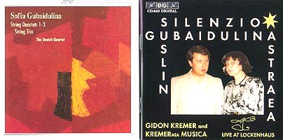AmazonUKThis CD was received for review in connection with the above report on Sofia Gubaidulina at South Bank and Goldsmith's College. Gubaidulina's four string quartets constitute an important line in her oeuvre, and it is good to have the first three gathered together with the trio which she wrote soon after quartet no 3. I doubt whether she would favour listening to them straight through, as happened in the Purcell Room, for there is a degree of repetition of self-referential gestures, of which she is no doubt well aware.