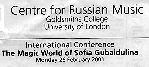 Magic World of Sofia Gubaidulina Goldsmiths College, 26 February (RW