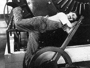 I had forgotten how superb is the whole thing, a homely family entertainment (lots of small kids in the nearly full Festival Hall) and yet it is too a telling political statement about exploitation in the '30s. Chaplin anticipates repetitive strain injury becoming 50 years on a cause for costly compensation claims, and recent times when the best endeavours to work for an honest living have been thwarted by crippling taxation realities; life in prison a preferable and far more comfortable option to urban homelessness.