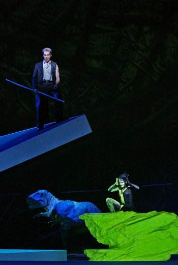 It’s all very well to say that the opera is ‘based’ on Shakespeare, or that the libretto is ‘an interpretation’ or that ‘all operas adapt their originals’ – they do, but what glory Verdi, Piave and Boito created when they ‘adapted’ Shakespeare, and what a travesty has been offered to us here. Is the music as bad as the libretto? Fortunately, no, but it’s merely pleasant stuff at best, heavily indebted to Britten, Strauss and Tippett amongst others – although would that Adès had the last composer’s skill in evoking the ethereal as evidenced in the ‘Songs for Ariel.’ Perhaps the best music is in the semi-duets for the ‘young’ lovers and the extended passage for Caliban, but even then it’s merely agreeable. The opening of Shakespeare’s play is one of the most immediately gripping in the canon, but here the tempest is rather weakly evoked, as is the suggestion of individual musical character for each protagonist. Prospero is envisaged as a creating his illusions on a magical palimpsest, tetchily reflecting on his lot as he does so, declaiming his grouchy feelings with gusto but never really possessing that sense of power which Shakespeare’s ‘sorcerer’ has – of course, Prospero is a version of the Creative Artist, renouncing his power over the audience at the play’s end, but there was little sense of that here.