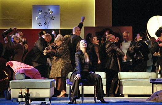 Alfredo (Peter Wedd) and Annina (Sian Meinir)