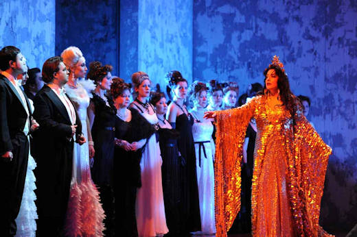 The rest of the characters are rather inconsequential so far as the plot goes. Among them we had Burkhard Ulrich, who was a discrete Pollux in vocal terms, mezzo Hulkar Sabirova, who offered an interesting voice in the part of Xanthe, and tenor Thomas Blondelle, who made an appropriate and funny Merkur - a kind of Loge, but less demanding. The four queens or goddesses, old lovers of Jupiter, were all excellent.