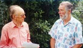 Eric Parkin (left) discussing the composer’s piano works