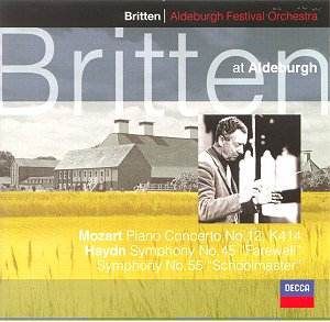 Britten directs from the keyboard in the Mozart concerto. He uses Mozart's