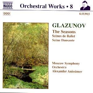 The Scènes de Ballet is an extremely effective suite in the manner of Massenet's four orchestral suites. The first movement Préambule is hispanically furnished, Marionettes a touch of the toy music box; Mazurka vigorous; Scherzino spring-like with flashing strings and woodwind; Danse Orientale having occupied Tamara's territory; Valse reeking of Palm Court and a grand Polonaise redolent of the Prince Igor Overture to round things off. The Scène Dansante establishes itself initially as hauntingly Tchaikovskian but soon runs out of steam and becomes somewhat flat. Then comes one of Glazunov's most famous works. The Seasons is here channelled into 15 tracks. My recollection of competing recordings may be faulty but I did not find this the most compelling of performances despite the high expectations raised by Raymonda where Anissimov is again at the helm. There are some creditable passages and some much better (such as the magical flute work in the first tableau). The hail is well conjured. Spring is nicely pointed. Summer is most warmingly done and is a stand-out track with its fine high tune presented with finesse in all its finery. Definitely a three star performance as despite its imaginative points overall it seems too laid back by comparison with previous recordings by Khaikhin (wonderful if my memory serves aright) and Svetlanov. Reviewer Rob Barnett