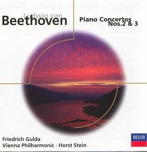 Not a great deal to be said of these two concertos. Gulda (who died recently) an artist bridging other people's divides (he was a composer and active as a jazz musician) is a stylish pianist playing in the grand manner. His control of dynamics and 'breathing' is remarkable. He lacks nothing in legato or celerity with notes flowing like molten silver. The recording tends to a hard edge which asserts itself most obviously in the violins and the piano tone at forte and above. You can subdue some of this through the tone control but it is still there. Grand manner performances ably aided by the beefy ebb and flow of Vienna's premier orchestra. Stein is a fine conductor - witness his Sibelius tone poem series on Decca with the Suisse Romande (an orchestra he seems to have enchanted for those sessions). A pity about the hard leading edge to the sound. Even so I would hope that Eloquence will trawl for the rest of the Gulda/Stein cycle in the Decca vaults.