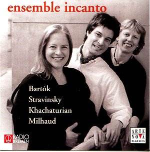 The Milhaud Suite is derived from his incidental music for Jean Anouilh's 'Le Voyageur sans Bagages', it was written in one day and makes perfect use of all three instruments. It is a very tuneful work which has led to a well deserved popularity; it includes quotations of South American Dances. Right from the start this ensemble demonstrates exceptional brilliance of playing and master of complex rhythms.