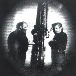 He is seen with the composer and his contrabass saxophone. The orchestra