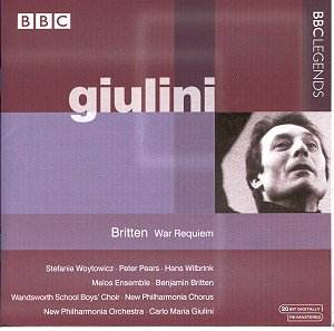 Giulini admired Britten and made a splendid studio recording around this time of the Purcell Variations and the Four Sea Interludes from Peter Grimes. His understanding of the larger issues of the War Requiem is never in question, and he has a first class team of soloists and an orchestra and chorus at the top of their form.