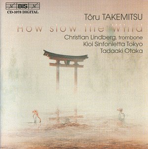 How slow the Wind was inspired by the verse of Emily Dickinson, "How slow the wind, how slow the sea, how late their feathers be!" It is a work imbued with a subtle sense of awe, a journey through darkness to light ("a milk white light in the midst of darkness") as the composer put it, the gently changing procession, in which Takemitsu's basic melodic material is always clearly audible, finally transforming itself quite magically into a D flat major chord at the very end. The closing couple of minutes, in particular, are wonderfully played with fine attention to the myriad detail in the composer's intricate and delicate scoring.