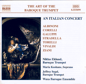 Nowhere in eighteenth-century Europe was the brilliance and suavity of trumpets, strings and the soprano voice more enthusiastically celebrated than in Italy. The fifth concert in the Naxos baroque trumpet series explores this heady combination in a set of pieces that reflect the contrasting ways in which Italian composers wrote for what, in later periods, on later instruments and with less versatile players, could well have been rather too much of a good thing. More reflective works, such as the Torelli and Franceschini Sonatas and Stradelli Sinfonia, counterbalance the role of trumpets in contributing their exciting colours to ceremonial occasions, and an added attraction is that most of these works are unlikely to be found in existing baroque collections.