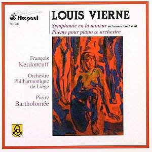 The single orchestral Symphony of Poitiers-born Louis Vierne will be well liked by anyone who favours the symphonies by César Franck, Franz Schmidt and Elgar. It is in four movements with the vigorous and desperately romantic first and third movements framing a lack-lustre Lamento. The finale is positive and again picks up Franckian determination mixed with the sort of forward-pressing theme you find in Elgar's Cockaigne and First Symphony. At 05.00 in the finale that whirling determination sounds uncannily like part of the finale of Bax's Sixth Symphony written in 1934. The Vierne is dedicated to Gabriel Fauré. I have distant memories of Georges Tzipine's performance on, what I seem to recall was, an old Erato LP. The orchestra was the ORTF SO and the coupling was the orchestral version of the song cycle Spleen et Détresses. Does anyone still have that LP and if so would you mind sending me a CDR if you can possibly make one. I would love to be able to compare the performances.