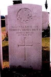 Roy Henderson spoke highly of Mott: "He was a superb singer who would have been No. 1 baritone in England had he lived. As a boy of 16, I heard him singing Elijah at Nottingham and was thrilled by his performance." Apart from The Starlight Express and Fringes Of The Fleet recordings, Mott made a few others, but one song sticks in my memory. "The Sands o' Dee," concerns a young lass who, in gathering her sheep, crosses the sand while the tide is out...but fails to return in time. Her man laments...and there is a scream in the voice of this uncommon soldier, expressing the man's grief and torment...which brings a lump to my throat every time. © Charles A Hooey Acknowledgements. Thanks to everyone over several years for helping to amass the above information: in England, Dame Norma Major for direction to British government information services, The Commonwealth War Graves Commission, John Davies, Dennis Foreman, Ewen Langford, Graham Oakes, photographer Tom Tulloch-Marshall, Wayne Turner, John Ward, Geoffrey Hodgkins and Michael Messenger, and Jim McPherson in Toronto, here in Canada. C.A.H. |