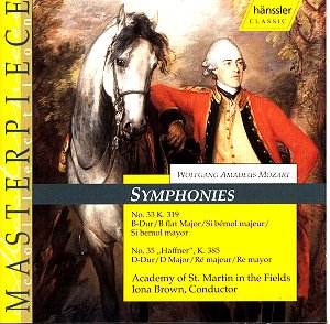 (1756-1791) Symphony No. 33 in B flat major, K319 Symphony No. 35 in D major, K385 'Haffner' Academy of St Martin-in-the-Fields/Iona Brown Rec April 1997, Henry Wood Hall, London |