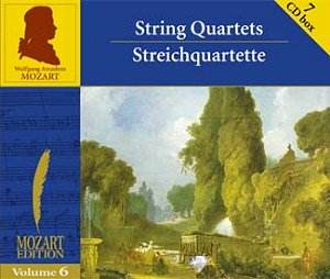 The Franz Schubert Quartet of Vienna performs all of the later quartets, from the six "Haydn" quartets onward. Like the Sonare, this quartet has a very good sound, and is perhaps a bit more cohesive. The works they play belong to a much more mature period of Mozart’s work. In the "Haydn" quartets, Mozart was entering a new world. Some say that these works surpass even Haydn’s quartets, though that is debatable. In any case, Mozart here gives a sample of what quartet writing really is - the dense counterpoint, the subtle nuances and dynamics, and the rich melodies. These works are much more massive than the early works - with increasingly long movements, reaching 14.35 in the andante of the A major quartet KV 464. Mozart experimented with huge, sprawling forms, and managed to tame and control them.