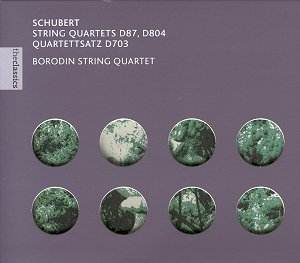 the other the less well known early quartet in E flat, D 87. The latter