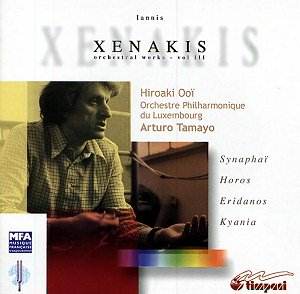 Horos opens with a terrifying impact . In most of his works for large orchestral forces, Xenakis delights in superimposing large blocks of sound, then almost mathematically alternating and varying the interplay of these blocks. Horos illustrates this to perfection. He is sometimes strict in his rhythmic and melodic notation, at other times giving freedom to the performers, and between these extremes is played out a web of sonority that is constantly moving, almost malleable. The emerging blend of timbres takes us from something soothing to something cataclysmic in a very short time span so be warned, it is not a comfortable listen.