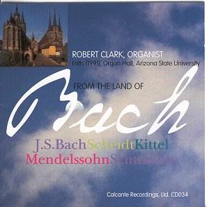 Most of the performances are worthy of this splendid music. Registration is historically informed throughout and even though the organ does not have a swell box (expression box), the crescendi in Schumann and Mendelssohn are quite smooth. The acoustic of the hall is carefully rendered and the result is clear and distinguished. Also the fine tracker action responds perfectly to Clark’s technique and musical intentions are therefore fully articulated. Clark’s rhythms are sprightly and most of the finger-work is tidy. Occasionally there are some slips either in the hands (for example, Schumann’s Fugue No. 5, or the trills at Scheidt’s Passamezzo, Variation 5) or the pedals (Bach’s Prelude in E-Major – first solo pedal part). Clark falters in Mendelssohn’s Sonata in A-Major – First movement. There seems to be insufficient weight and sense of arrival to represent the maestoso character of the piece. There is compensation however in the calm sound of the second movement.