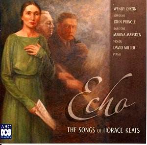 On the other hand the songs are not impressionistic - or not very impressionistic. The Point of Noon and Moonlit Apples which is as dewily luxuriant as the buzzing unDelian summer evoked by Havergal Brian in his Fifth Symphony The Wine of Summer. They stand well away from the alienation of the Second Viennese clique. Had Keats gone down that avenue he might have experienced less of an occlusion during the period from 1950 to 1990. Lauris Elms recorded an LP of Keats's songs in 1972 but apart from that and the Keats chapter of various Australian singing competitions this music has slept deeply.