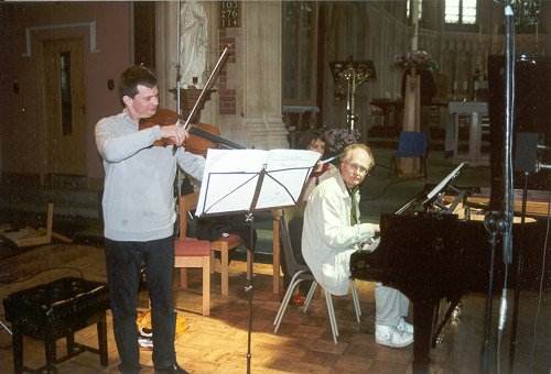 To the outsider the chief characteristic of such an occasion is the combination of informality and the immense knowledge and experience of those involved, though an authority very lightly worn. Yet although laid back in manner, standards are rigorous and it needs a special sort of musicianship to sustain playing and enthusiasm over the time span necessary for the completion of a digital recording, which can run to many takes, with always the inclination by both artists and producer for just one more to be sure. Here after a remarkably cogent play-through of the whole piece, the music was recorded in sections with much attention to the nuances of intonation and technique. As one viola player talking to another Michael Ponder’s ‘could you make that high B-flat even sweeter’ found an immediate response from a player on top form.