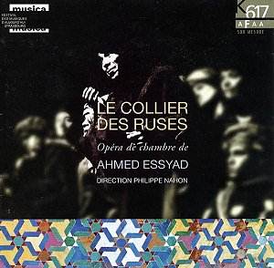 Ahmed Essyad was born near Rabat in 1939. A pupil of Max Deutsch, himself a Schoenberg student, Essyad became aware of current influences in Western music whilst remaining loyal to the music of his own Arabo-Berber origins. In the extensive notes he is said not to make a synthesis between the two cultures but an "overriding enrichment of their specific qualities." Composed in 1977 the chamber opera The Necklace of Guiles was newly produced in 1994 for a Strasbourg production and these discs are one of the results. The work is part opera, part theatre and fuses twelve tone procedures with Arabo-Berber declamation, a piece of music theatre in a sense that explores, exploits and attempts to reconcile – in their perhaps irreconcilable tensions – the twin traditions to which the composer is heir.