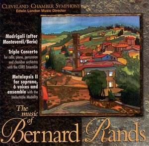 The British-born composer Bernard Rands studied with Luciano Berio who has since become a firm friend; and all three works here are connected with Berio in one way or another. The first performance of Metalepsis II, dedicated to Bruno Maderna, was conducted by Berio whereas Madrigali was undoubtedly inspired by Berio’s own transcription of Monteverdi’s Il Combattimento. Finally, Rands’ most recent piece in this release Triple Concerto is dedicated to Berio.