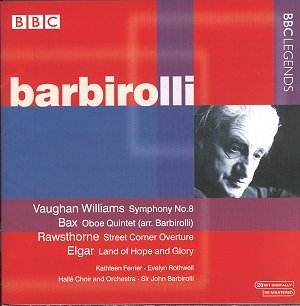 Vaughan Williams dedicated his Eighth Symphony to "Glorious John" and some of the pride Barbirolli took from that honour ennobles this compelling performance given some eleven years after he premiered the work with the Halle in 1955. The opening variations are each given their own special character, Barbirolli enjoying incidental pleasures along the way rather than going for the sort of long line to be found in Haitink’s recent version for EMI, for example. The Scherzo alla Marcia is quirky without sounding gawky and the Hallé brass section is on particularly good form. The Hallé strings dig deep into the notes of the following Cavatina, lending it a glorious gravitas and profundity unmatched on record. The Finale’s ’spiels and ’phones are remarkably clear and well-defined for a live recording of thirty-five years ago. Like the Finale of Mahler’s Seventh Symphony, this is a joyful movement - bordering on hysteria - and can seem rather trivial and anti-climactic if not handled with the utmost care and taste. Barbirolli brings unshakeable conviction and style, rounding off the work with a musical version of the defiant nod to camera he was wont to give in televised interviews. A persuasive account, brimming with personality and dripping with nostalgia: a vibraphone can sound outdated, queasy and rather embarrassing these days - the aural equivalent of brylcream - but in the symphony’s outer movements, it conjures up post-war, cold-war Britain as vividly as Mahler’s horn calls and cowbells trigger an Austrian mountainside.