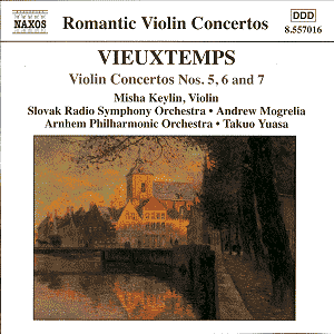 Vieuxtemps was a "neo-classicist". In common with "neos" down the ages he took the tried and trusted formulae, and lightly spiced them with modernism in moderation. As a soloist of some standing, he was well up with the "cutting edge" of the time: Beethoven’s ground-breaking Violin Concerto was in his repertoire, and he played Mendelssohn’s, which was then still in the "ultra modern" class. You can certainly feel something of these, and especially the latter, in the concertos on this disc. Moreover, the 15-minute span of the first movement of the Fifth Concerto also breathes something of the grandeur and breadth of Brahms, except that Brahms hadn’t yet written any of the symphonic music from which that feeling derives! Although as a performer he had been compared to Paganini, you will find little or nothing of the latter’s flashy showmanship in Vieuxtemps’s own concertos. In combining the moderation of the classicists of his past with the Romantic warmth of his present, he indulges in modest inventiveness but steers well clear of any of those pesky, overheated histrionics. In fact, you could happily curl up with a nice, warm mug of cocoa and a Vieuxtemps concerto, and afterwards - but only afterwards - sleep all the better for it.