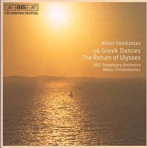 Of the almost 148 minutes of this set two hours is given over to the highly approachable Greek Dances - all thirty nine of them (listed at the end of the review) - if you include the three alternative versions. The remaining 28 minutes are allocated to The Return of Ulysses which is Skalkottas in twelve tone mode - more Berg than Webern. This dichotomy is not completely pure; witness the Bergian rhapsodic violin solo of Chiotikos (II. 8) or the salty brassy dissonant snarls in Tsamikos (tr.15 CD2 and tr. 21 CD1) the latter rather like the squat obbligato grumblings in Nyman’s Prospero's Books. The dances should appeal to listeners who already appreciate Eshpai, Enescu, Janáček or Kodály with occasional infusions of Stravinsky and even Vaughan Williams and Copland.