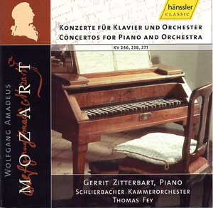 (1756 - 1791) Concerto for Piano no 8 in C major, K 246 (1776) Concerto for Piano no 6 in B flat major, K 238 (1776) Concerto for Piano no 9 in E flat major, K 271 (1777) Schlierbacher Chamber Orchestra/Thomas Fey Recorded Germany, June 2000 |