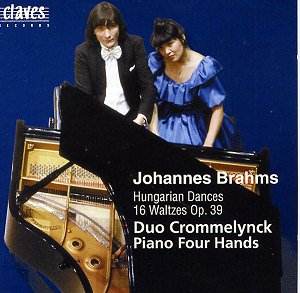 From the very outset of his career as a young and penniless musician in his native Hamburg, Brahms was passionately fond of Zigeuner (gypsy) music, and his enthusiasm was particularly encouraged by two fellow musicians, the Hungarian violinists Eduard Reményi and Joseph Joachim. Brahms completed a total of twenty-one Hungarian Dances, which he arranged or composed from existing material, using the piano duet medium. The earliest of these pieces dates from 1853, the year he first met Reményi, while the others were written over a period of several years subsequently. While the listener is unlikely to want to listen to the entire sequence in one sitting, Brahms's mastery is such that the approach he brings is constantly imaginative. For example, Nos. 11 (track 11: 0.00) and 12 (track 12: 0.00) are both D minor pieces, yet they could hardly be more different, their tempi being Andante and Presto, respectively. These opportunities are imaginatively delivered by the Duo Crommelynck (Patrick Crommelynck and Taeko Kuwata) who, the otherwise well detailed booklet informs us, died tragically in 1994. An accident would seem the likely cause, but we are not told. Their playing is exemplary, at once clear in texture and unanimous in ensemble, with a good feel for tempo and rubato. These strengths are emphasised by a sensitive recorded balance, and the twenty-year-old recording is particularly pleasing in this remastering. Like Beethoven before him, Brahms was drawn to Vienna, where he spent the final part of his career. The marvellous set of Waltzes he composed in the mid-1860s came at the very time he was making this move, and they form a sensitive creative response to the waltz idiom which attracted so many composers. These are miniatures rather than substantial individual pieces collected in suite form: the entire sequence of sixteen waltzes is less than seventeen minutes in duration. As such, it is possible to perform the whole sequence or a selection, although this CD makes the latter option difficult, since there is only one track containing all sixteen: track 22, following the Hungarian Dances. The opening of the sequence (track 22: 0.00) gives a fair indication of the musical style and the players' winning approach. Coupling these dance pieces together is a sensible option for any collector, and the performances are rewarding too. |