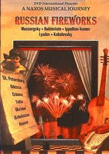 After being singularly unimpressed with the Italian and French Festivals in this Naxos ‘Musical Journeys’ series, I am delighted to report that this Russian Fireworks compilation is much more successful. True, there are odd sequences where there is a mismatch of images and music, or some unimaginative setting like people running down the Potemkin Steps (immortalised in the film, Battleship Potemkin) at Odessa for Kabalevsky’s Comedian’s Galop. On the whole, however, this DVD is a feast for the eye, the journey featuring some fascinating, lesser-known Russian locales often beautifully photographed in excellent colour. The notes for the music are non-existent save the list of titles as above. The Slovak Orchestra has four conductors here so one might safely assume that all the pieces are taken from the considerable Naxos/Marco Polo catalogues. The performances, although not top drawer, are at the least acceptable enough, and often quite spirited.