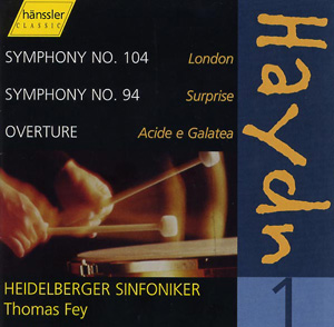 This is the first release in a projected 30+ CD series of the complete Haydn symphonies from Hänssler Classic. Nikolaus Harnoncourt protégée, Thomas Fey, is in charge. Should subsequent releases from this source come close to this standard then Fey’s place in recording history will be assured. Interestingly the Heidelberger Sinfoniker pragmatically use a blend of period and modern instruments. The brass and timpani are played on authentic instruments. They are joined by modern woodwind and by strings which are played without detectable vibrato.