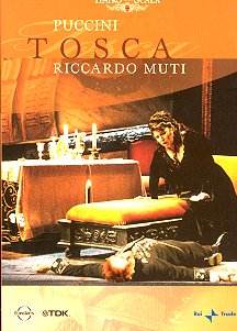 There is no doubt who is being trumpeted as the main draw here. Muti’s name appears as boldly as Puccini’s on the front cover, with everyone else reduced to small print on the back. Well, in these days of marketing machines, who can blame them? Indeed, there was a time in my student days when a new Muti recording was a real event, keenly anticipated. The results were not usually disappointing; I think fondly of his Carmina Burana, Pictures at an Exhibition, Scriabin Symphonies and Aida, to name a few. These performances generally stood out for their controlled abandon, exciting rhythmic drive and ecstatic climaxes, qualities that are in short supply here. That’s not to say there aren’t things to enjoy in his conducting. Now in his sixties, the accent seems to be more on lovingly shaped lyricism and a refusal to give us ‘technicolour’ big moments. This no-nonsense approach is evident from the start, as the camera watches him come smartly into the pit, brief acknowledgements, then straight in with a clean, fairly swift rendition of the big, dramatic opening Scarpia motif. He never lets the singers linger over high notes (as at the end of Cavaradossi’s first aria, Recondita armonia) but waits, in an almost symphonic fashion, for true climactic points, such as Scarpia’s first appearance (Bel rispetto!). This does give cohesion to the whole piece, and the last act, too often seen as a weak epilogue to the main drama (i.e., Scarpia and Tosca) emerges with beautifully controlled passion and warmth. The Scala forces, who must know this score by heart, play well for him, the strings having a supple, singing quality that could withstand any comparison.