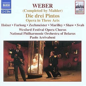 (1860-1911) Die drei Pintos, (The Three Pintos) - comic opera in three acts First presented on 20 January 1888, Leipzig. Don Pantaleone, a nobleman from Madrid, Robert Holzer (bass); Don Gomez, a nobleman from Madrid, Peter Furlong (ten); Clarissa, Don Pantaleone's daughter, Barbara Zechmeister (sop); Laura, Clarissa's maid, Sophie Marilley (mezzo); Don Gaston Viratos, Former student from Salamanca, Eric Shaw (ten); Don Pinto, a country nobleman from Castrilla, Alessandro Svab (bass); Innkeeper, Stewart Kempster (bass); Inez, the Innkeeper's daughter, Sinead Campbell (sop); Ambrosio, Don Gaston's valet, Ales Jenis (bar) National Philharmonic Orchestra of Belarus/Paolo Arrivabeni Live recording of the 2003 Wexford Festival Opera production Recorded at the Theatre Royal, Wexford, Ireland, on 22, 25, 28, 31 October 2003 |