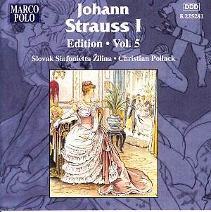 My slight disappointment that Pollack is back again for volume 5 has to be tempered by the consideration that he is dedicated heart and soul to this repertoire ; indeed, the editions used come from the Christian Pollack archive. Furthermore, the results of Märzendorfer’s sessions seem to have rubbed off on the orchestra, which, especially during the first half of this CD, produces playing which is far cleaner and clearer in its outlines compared with volume 2, much as it did under the older conductor’s baton. At the same time Pollack, by exerting a less rigid control over the proceedings, allows the orchestra to exude a sense of great enjoyment. For a while it seemed as if we were really getting the best of both worlds, but as the CD went on I began to notice declining standards of intonation and a certain happy-go-lucky air. And, though always sympathetic to the dance and the style, Pollack seems too mild-mannered to whip up, say, an exciting coda. Still, these are likeable, understanding performances, sometimes more than that, and should not disappoint those who are getting to know the elder Strauss.