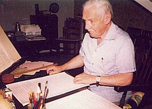 To Jacob, music was his life. Never did he consider retiring and so he worked on into his late eighties producing a stream of works, many from commissions. Some, in his own words, were "unpretentious little pieces" but he was ever able to come up with a musical gem of true substance. Though he enjoyed good health throughout his life, he was troubled in later years with failing eyesight, and his written hand became shakier as he struggled to set down his ideas, but he remained cheerful and optimistic. In a letter to me in the early 1980s, he wrote: "I'm still note-spinning despite advancing years, deafness and blindness!" A few years earlier, when I visited him, he showed me the manuscript score, just completed, of his Symphonic Study: The Line of Life for wind band. He pointed to a few notes on high leger lines and explained that when he could not see clearly enough to confirm the accuracy of the notes on them he would write "C"' or "E flat" (or whatever) against them, in red pen!